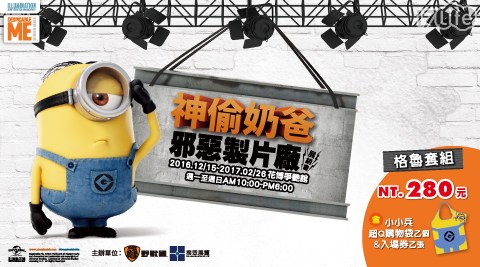 只要280元即可享有【神偷奶爸-邪惡製片廠展銷會】單人展期格魯套組:小小兵超Q購物袋乙個+片廠入場資格乙次?