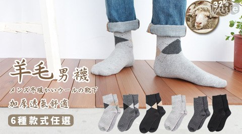 平均每雙最低只要84元起(含運)即可購得高品質加厚透氣舒適羊毛男襪3雙/6雙/9雙/12雙,款式:素色/菱形,多色任選。